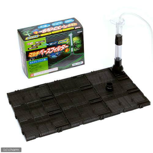 底面式フィルターの代表は「バイオフィルター」「マルチベースフィルター」「ボトムボックス」の3シリーズです。最も有名な「バイオフィルター」は昔から底面フィルターの代名詞として有名です。単純な構造をもちますので、どの製品にも極端な違いはありません。また、底面フィルターの場合、底面式フィルターの上に敷く「底床」と「エアーポンプ(エアレーション)」が別途必要になります。