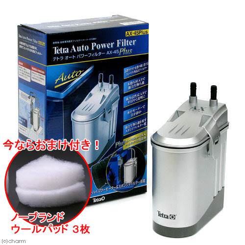 外掛けフィルターで有名なのはテトラ社の「オートワンタッチフィルターのATシリーズ」です。安価で静音性に優れ、初期不良も少ないことから人気が高い製品です。ただし、ろ材を豊富に入れたい場合にはGEXの「らくらくパワーフィルター」のほうが濾過槽が大きいため、自分でろ材を用意する場合にはこちらの選択でも構いません。
