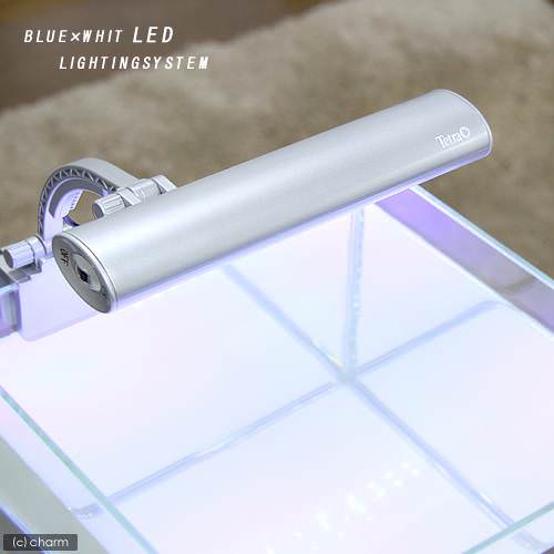 金魚水槽には低価格の「LED照明」がおすすめです。 金魚は水草を食べてしまうため、難易度が高い水草を育成しても食べられてしまいます。そのため、金魚水槽では水草はエサとして入れる程度です。その場合、カボンバやマツモ、アナカリスなど、安価で育成難易度の低い水草となり、高光量の照明は不要で、光量の低い低価格のLED照明、蛍光灯照明で十分です。また、水草をまったく育てない場合でも照明はあったほうが便利です。室内照明だけだと暗くて水槽内が見えない可能性があります。また、照明のON/OFFにより熱帯魚の体内時計を整えることができ、熱帯魚の健康にも影響を与えます。生体飼育のみの場合であれば照明タイプはLED照明がオススメです。LED照明は蛍光灯に比べデザイン性が高いものが多く、光の色や強さを変更できる機能を持った商品もあり、選択肢が豊富にあります。